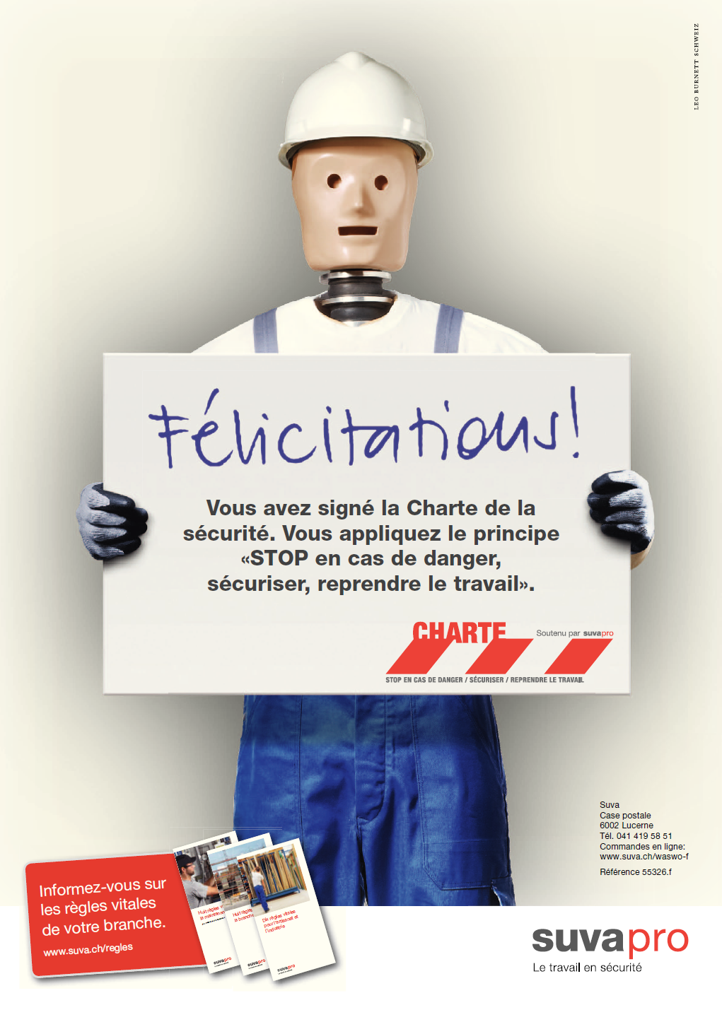 JHD adhère à la charte de sécurité SUVA PRO, qui engage les entreprises signataires à prendre et à appliquer les mesures suivantes :